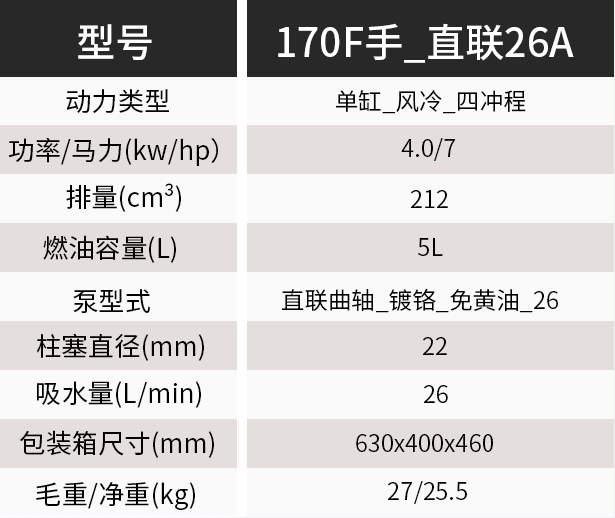 170F汽油26直连喷雾机